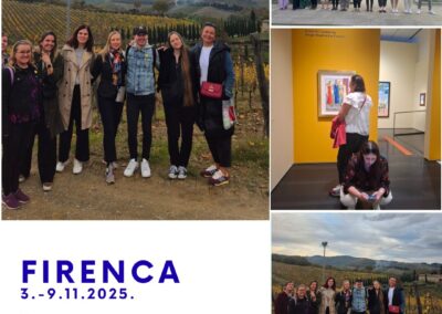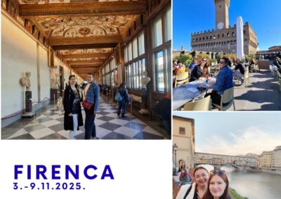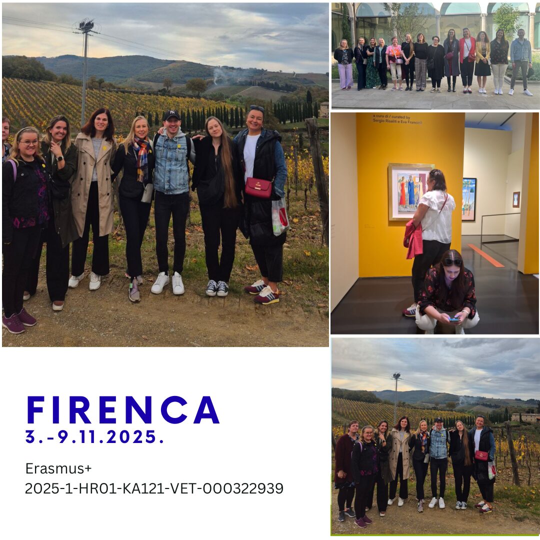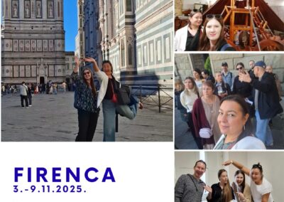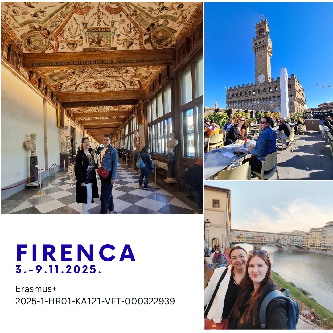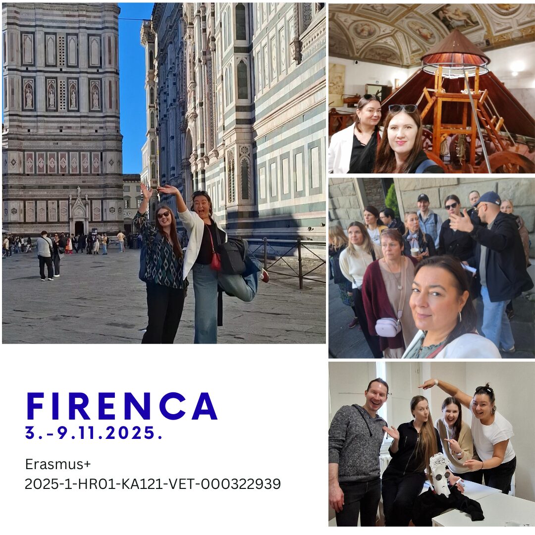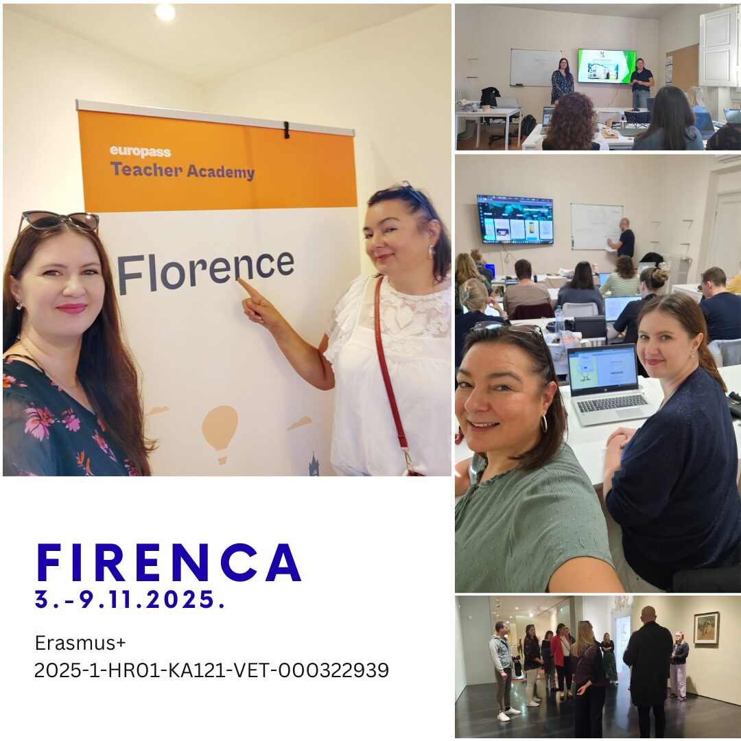 Profesorice Tamara Lapac (engleski jezik u struci) i Maja Mendler (računalstvo) sudjelovale su na seminaru u sklopu prvog ciklusa Erasmus akreditacije 2025-1-HR01-KA121-VET-000322939, usmjerenom na inovativnu primjenu digitalnih alata u obrazovanju kulturne baštine. Seminar je održan u Firenci od 3. do 8. 11. 2025 godine pod nazivom Digital Tools for Cultural Heritage Education.